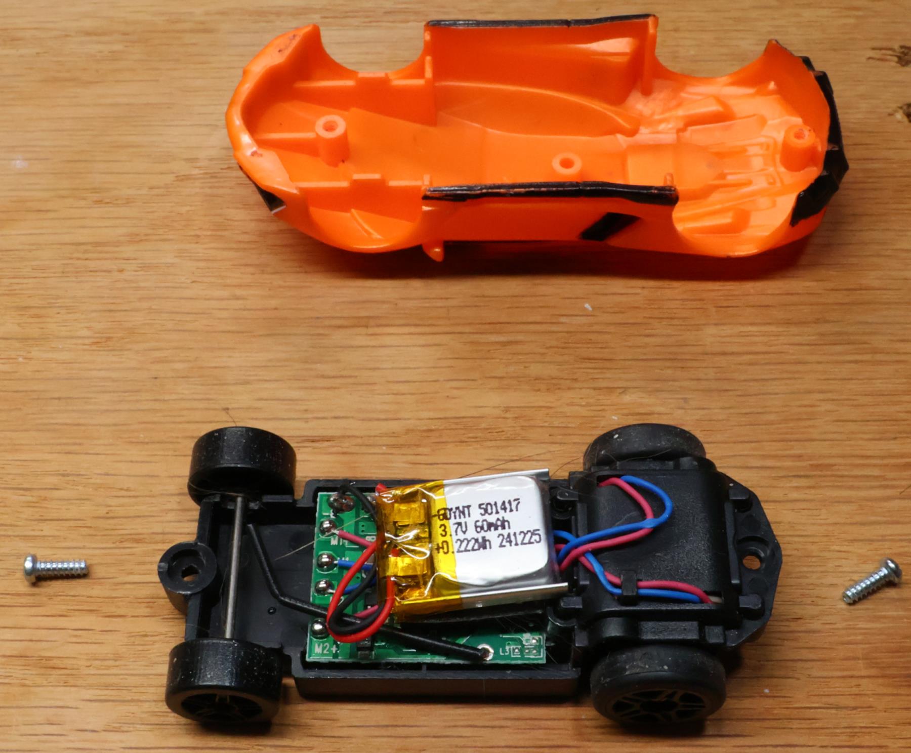 Like any good engineer, I'm always interested in learning how things work. The third reason for buying this car was to figure out how in the world did they get all of the necessary stuff inside this tiny model. There are two metal screws that hold the body to the frame.